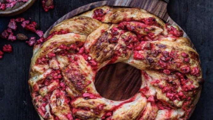 Как только сборка будет завершена, накройте тесто тканью и дайте «отдохнуть» минимум 3 часа. Разогрейте термостат духовки до 180 ° С. Взбейте последнее яйцо и смажьте им тесто при помощи кисточки, посыпать цельными пралине. Поставьте форму с тестом в духовку примерно на 25-30 минут, следя за приготовлением. При необходимости накройте алюминиевой фольгой так, чтобы ничего не пригорело. Ешьте теплым или холодным.