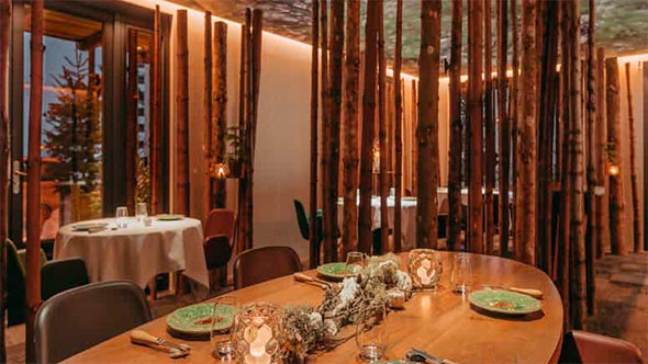 Шеф Клеман Бувье черпает вдохновение в локальной природе, создавая "лесную" подачу и интерьер. Фокус на дикорастущих травах, фермерских сырах и альпийских рыбах.