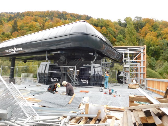A Allemond, les quais d’embarquement et débarquement sont en cours de mise en place. Photo Le DL /Aliette VIARD3 /3