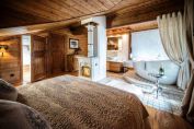 Шале класса Люкс расположено в уединенном уголке Куршевеля 1850, всего в 20 м от спуска Коспийо (Cospillot), а центр курорта находится в 8-10 минутах ходьбы. Интерьер шале выполнен в альпийском стиле с элементами из натурального дерева в декоре. Общая площадь составляет 280 м2, возможность принять до 12 гостей в 6 спальнях (10 взрослых и 2 детей).