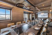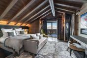 Общая площадь дома составляет 900 м2, 5 уровней, 6 спален (1 из спален-детская с 2 двухъярусными кроватями), каждая спальня располагает собственной ванной комнатой и сейфом. Также в шале есть просторная гостиная с камином, бар, кухня закрытого плана, обеденная зона, гараж, а на нижнем уровне винный погреб и небольшой Спа-салон (хамам, джакузи, бассейн, тренажерный зал, зал для массажа, сауна). Шале может принять до 10 взрослых и 4 детей.