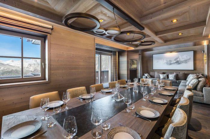 Шале находится в Куршевеле 1850, в двух шагах от центра курорта, в районе Cospillot.
