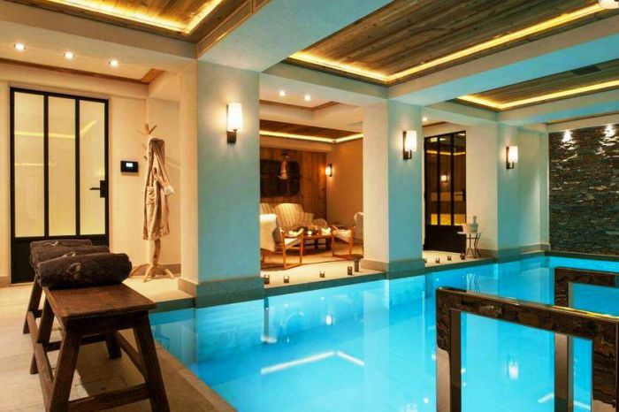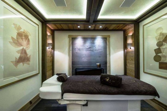 В шале 5 уровней, 6 спален, каждая с собственной ванной комнатой, гостиной, обеденной зоной, кухней, Спа (бассейн, хамам, фитнес-зал, сауна), также имеется бар, ски-рум, игровая комната, домашний кинотеатр, гараж и прачечная. Большинство из спален оснащены балконом либо террасой. Современное шале, где есть вся необходимая техника и мебель для максимально комфортного пребывания в горах.
