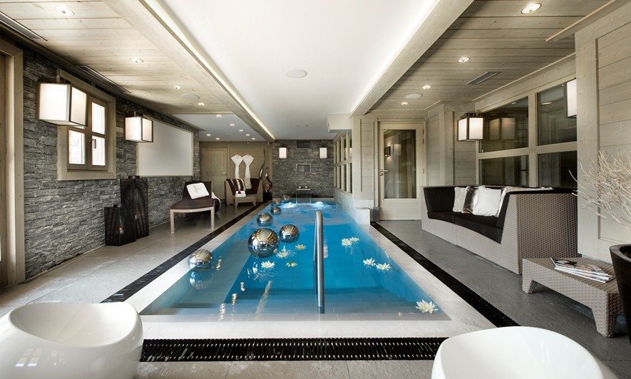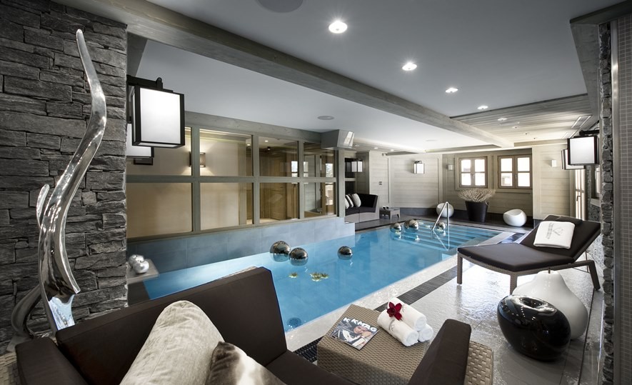 Спа шале предгалает своим гостям крытый бассейн с функцией водопада и противотоком, хамам, сауну а также зону отдыха, где гостям предложат расслабляющий чай на травах либо безалкогольные напитки.