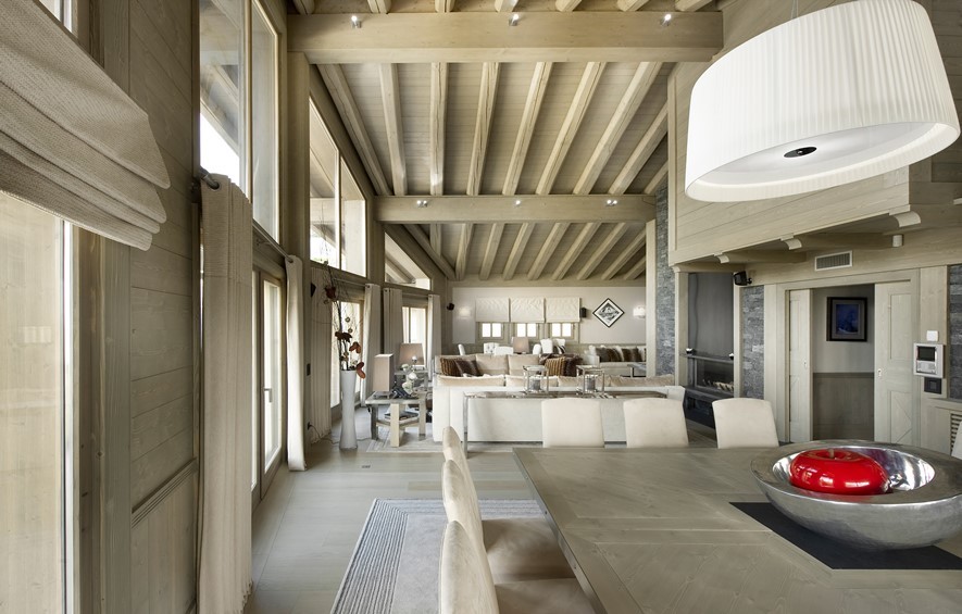 Четырехэтажное шале в Куршевеле состоит из 5 спален, общая площадь которых составляет 500 м2 и рассчитано максимально на 10 человек.