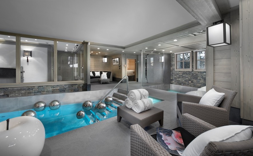 Четырехэтажное шале в Куршевеле состоит из 5 спален, общая площадь которых составляет 480 м2 и рассчитано максимум на 10 гостей.