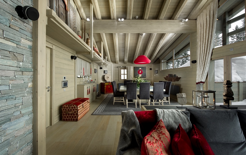 Трехэтажное шале в Куршевеле состоит из 5 спален, каждая с ванной комнатой.