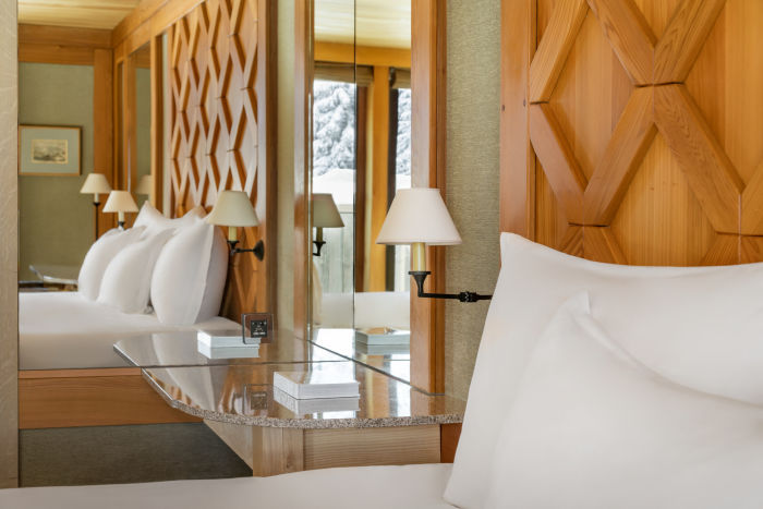 Номер для 2 человек. Спальня с отдельными кроватями, большая гардеробная, ванная комната с большой душевой кабиной, туалет. В номере имеется Wi-Fi, TV с бесплатными фильмами по запросу, звуковая система, сейф. Вид на деревню и зону катания. Возможно объединение номеров данной категории между собой.