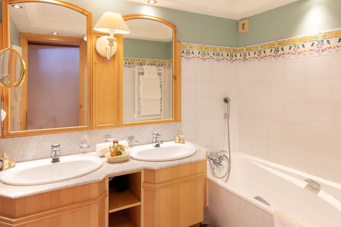 Спальня с кроватью king-size (200x200) или 2 отдельными кроватями (100x200), кроватка для младенца предоставляется по запросу без дополнительной платы. Ванная комната с ванной, предоставляются халаты и тапочки. В номере бесплатный интернет Wi-Fi, сейф и DVD-плеер предоставляются по запросу.