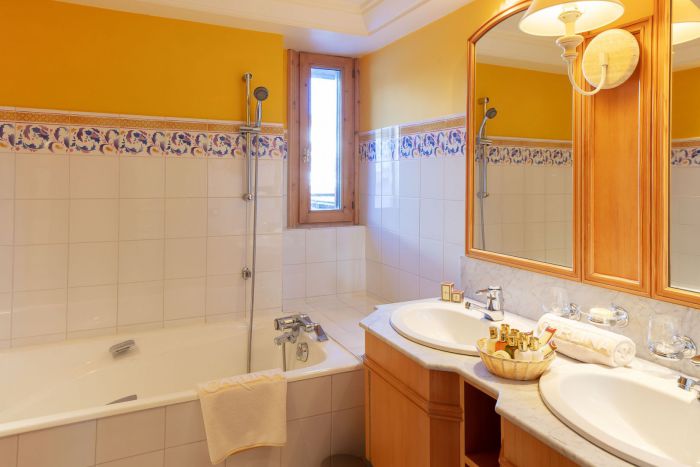 Номер для 2 взрослых и 1 ребенка. Cпальня с кроватью king-size (200x200) или 2 отдельными кроватями (100x200), кроватка для младенца предоставляется по запросу без дополнительной платы. Гостиная отделена от спальни, раскладной диван для ребенка до 13 лет. Ванная комната с ванной и душем, предоставляются халаты и тапочки. В номере бесплатный интернет Wi-Fi, сейф и DVD-плеер предоставляются по запросу.