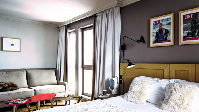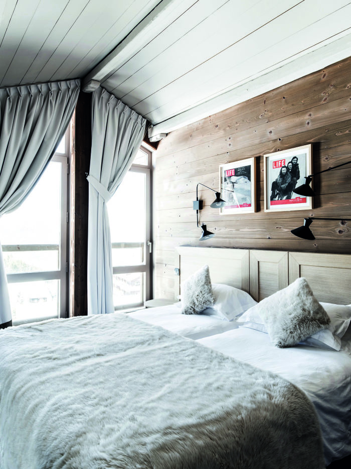 Des Trois Valees расположен в самом центре станции, с прямым выходом на трассу (ski-in/ski-out). Отель был полностью обновлен в 2013 году. Интерьер отеля соединяет в себе классический и стиль модерн 50-х годов.