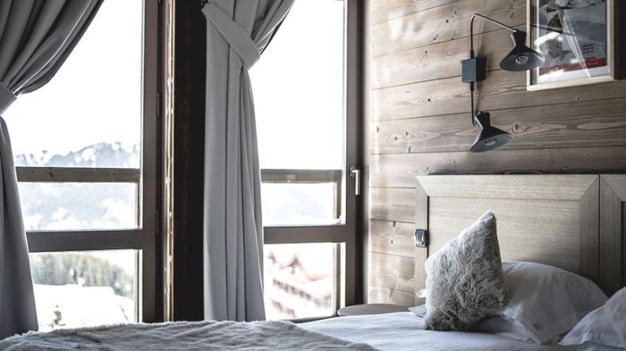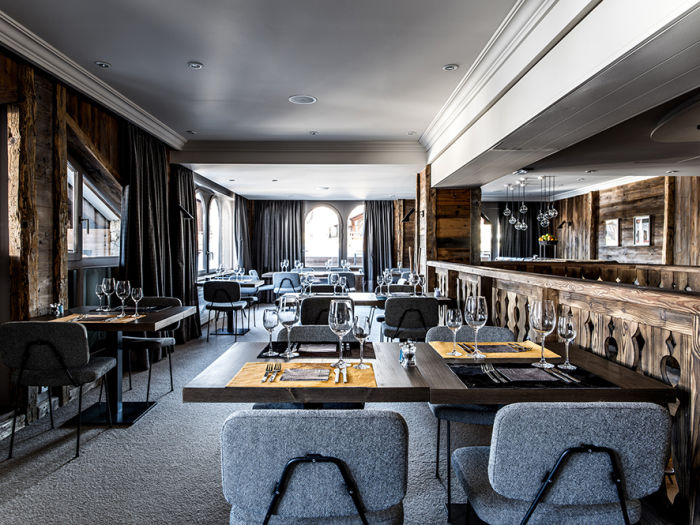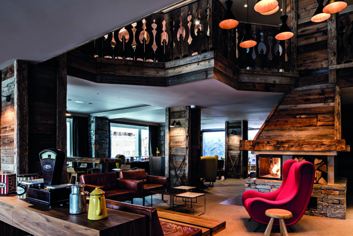 В лобби отеля Les 3 Vallées, у камина, вы сможете полюбоваться завораживающим видом на горы с удобных и стильных сидений, потягивая коктейль или горячий шоколад и наслаждаясь закусками.