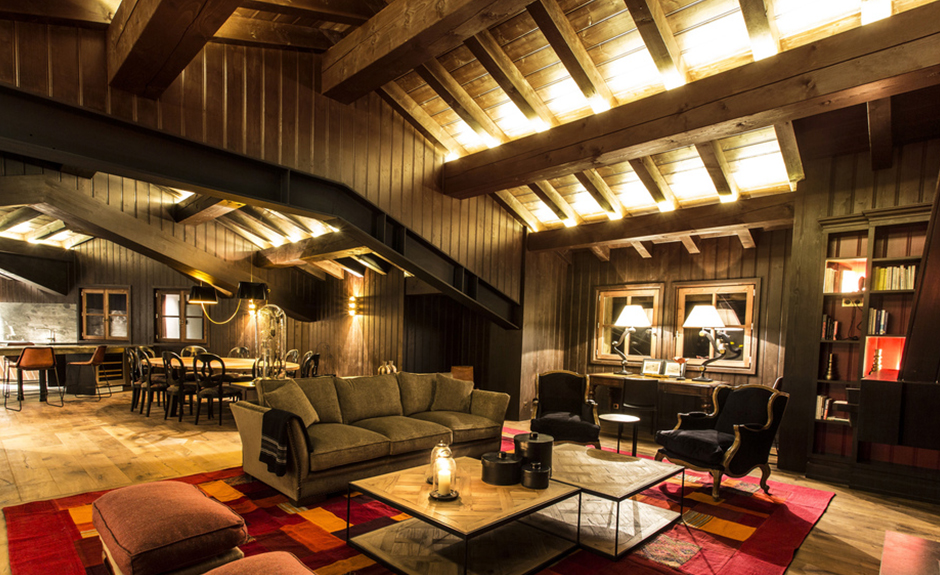 Шале для 12 человек (11 взрослых и 1 ребенка). 5 спален, каждая с ванной комнатой (ванна и душ) и отдельным туалетом, гостиная с камином, столовая, полностью оборудованная открытая кухня, домашний кинотеатр, спа с крытым бассейном, парная, сауна и кабинет для массажа, комната для хранения лыж, лифт.