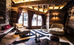 Шале для 11 человек (10 взрослых и 1 ребенка). 5 спален, каждая с ванной комнатой (ванна и душ) и отдельным туалетом, гостиная с камином, столовая, полностью оборудованная открытая кухня, домашний кинотеатр, спа с крытым бассейном, парная, сауна и кабинет для массажа, комната для хранения лыж, лифт.