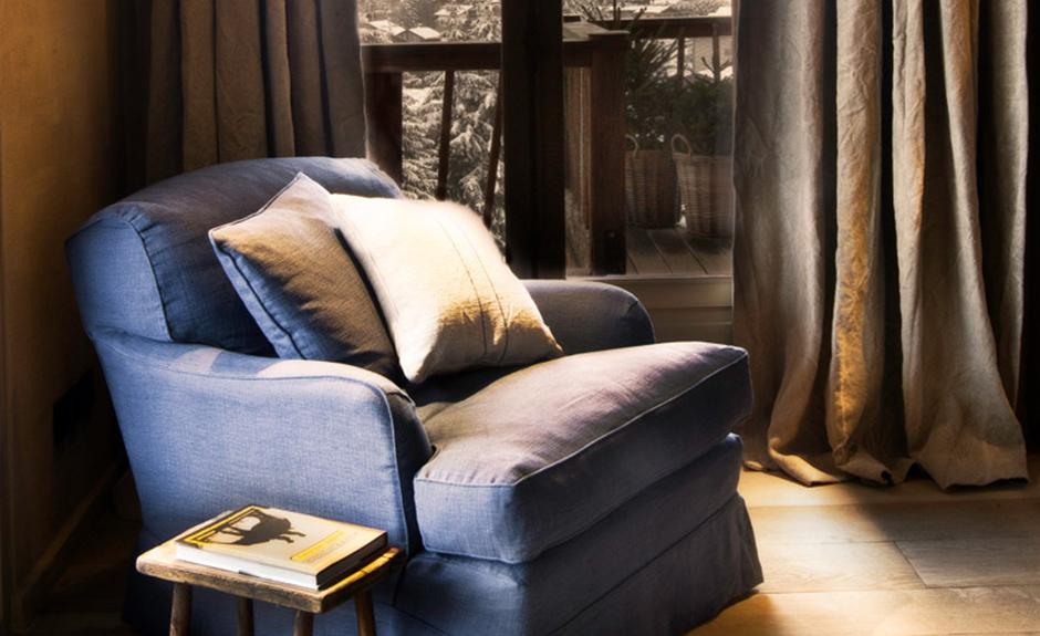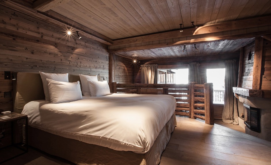Номер для 2 человек. Спальня с кроватью king-size, гостиная зона с камином, ванная комната и душевой кабиной, терраса с видом на горы и Межев.