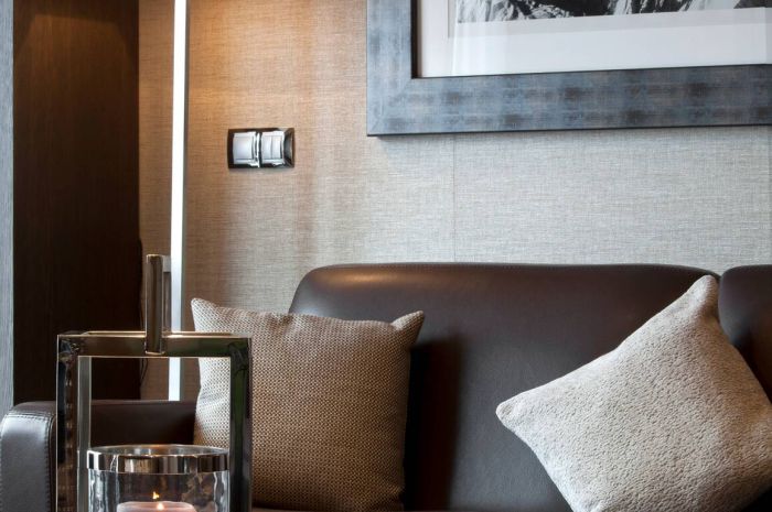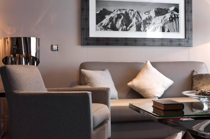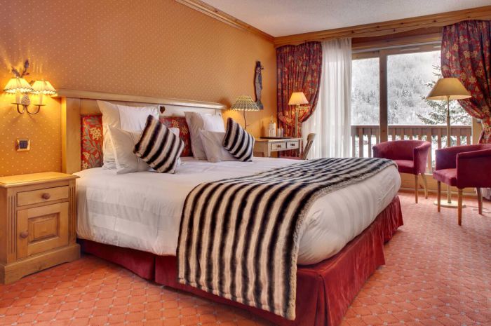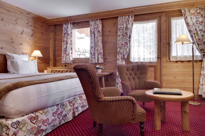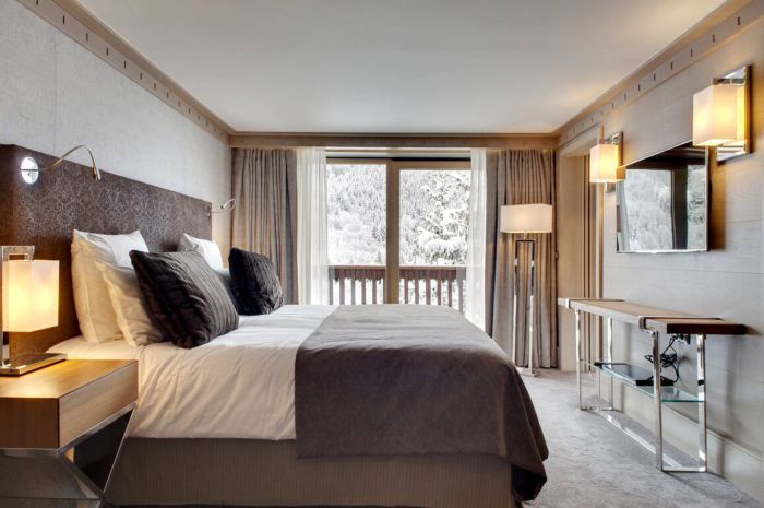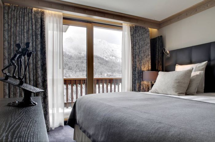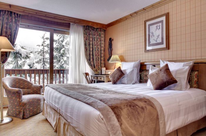 1 кровать размера "king-size" или 2 односпальные кровати, балкон на южной стороне с видом на склоны, ванная комната с совмещенной ванной и душем, отдельные туалеты, фен, халаты и тапочки, туалетные принадлежности Lalique, бесплатный Wi-Fi, телевизор с плоским экраном, Blu-Ray-плеер, док-станция для iPod с радио, телефоном, сейфом, дополнительная кровать не предоставляется