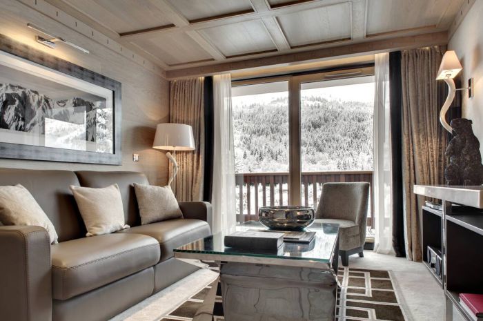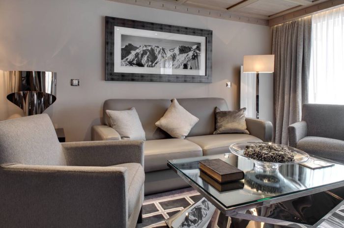 1 кровать размера "king-size" или 2 односпальные кровати, отдельная гостиная с диваном-кроватью для 2 детей, балкон на южной стороне с видом на склоны, ванная комната с ванной и душем, фен, халаты и тапочки, туалетные принадлежности Lalique, бесплатный WiFi, телевизор с плоским экраном, Blu плеер, док-станция для iPod с радио, телефон, мини-бар, сейф