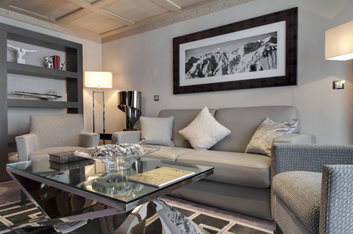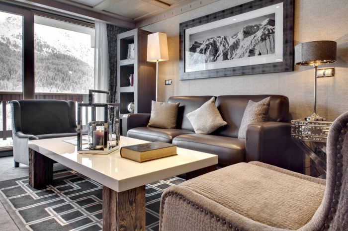 3 спальни (1 спальня на первом этаже - 2 спальни на первом этаже), 1 двуспальная кровать или 2 односпальные кровати в каждой комнате, отдельная гостиная с камином, балкон на южной стороне с видом на склоны, 2 ванные комнаты - 1 ванная комната на первый этаж с комбинированной ванной и душем - 1 ванная комната на первом этаже с отдельной ванной и душем, отдельными туалетами, феном, халатами и тапочками, туалетными принадлежностями Lalique, бесплатным Wi-Fi, телевизором с плоским экраном, Blu-Ray-плеером, док-станцией для iPod с радио, мини-бар, сейф, кофемашина Nespresso, дополнительная кровать не предоставляется