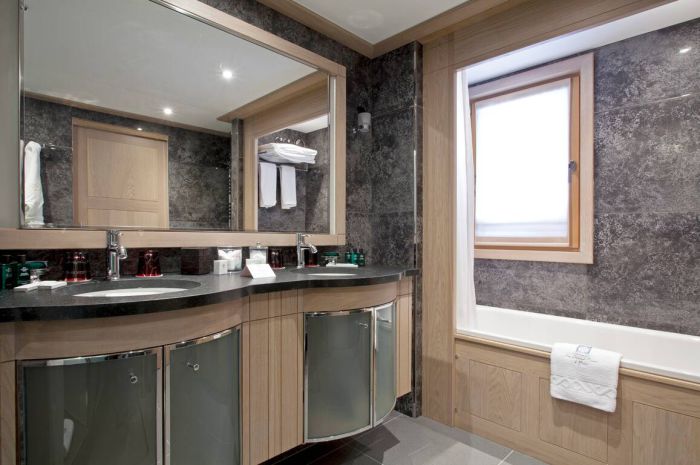 2 отдельные спальни, 1 кровать размера "king-size" или 2 односпальные кровати в каждой комнате, балкон на южной стороне с видом на склоны, ванная комната с ванной, отдельные туалеты, фен, халаты и тапочки, туалетные принадлежности Lalique, бесплатный Wi-Fi, телевизор с плоским экраном, Blu-Ray Плеер, док-станция для iPod с радио, телефон, сейф, дополнительная кровать не предоставляется