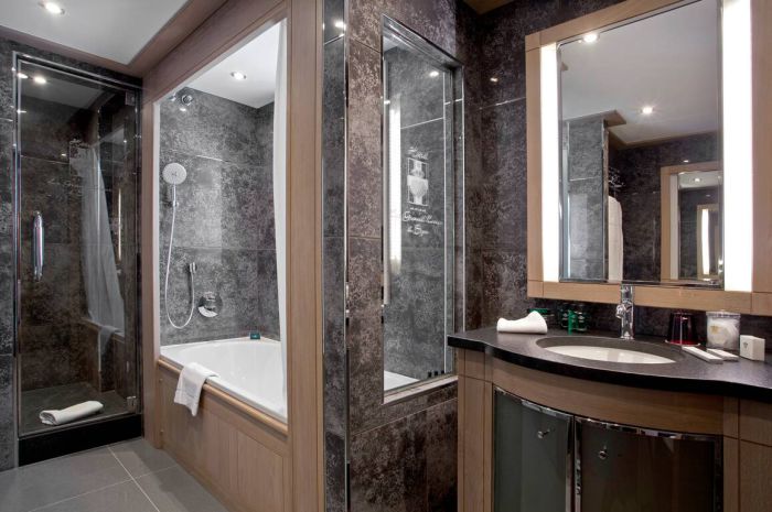 1 кровать размера «king-size» и 1 односпальная кровать, балкон на западной стороне с видом на горы, ванная комната с совмещенной ванной и душем, фен, халаты и тапочки, туалетные принадлежности Lalique, бесплатный Wi-Fi, телевизор с плоским экраном, Blu-Ray-плеер, док-станция для iPod с радио , телефон, сейф, дополнительная кровать не предоставляется