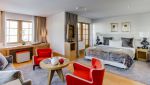 Шале состоит из двух сьютов, в каждом из которых большая двуспальная кровать и раскладной диван. На нижнем этаже гостиная с камином и кухней. Отдельная парная. Просторная терраса и балкон с видом на горы.