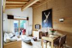Номер для 2 взрослых и 2 детей. Спальня с двуспальной кроватью, гостиная с выкатной кроватью для 2 человек, оборудованным кухонным уголком, обеденной зоной и камином. Ванная комната с ванной и душем. Отдельный туалет. Балкон или терраса. В номере: высокоскоростной интернет, плоский TV, большой выбор фильмов по запросу, кофемашина Эспрессо, халаты и тапочки, сейф.