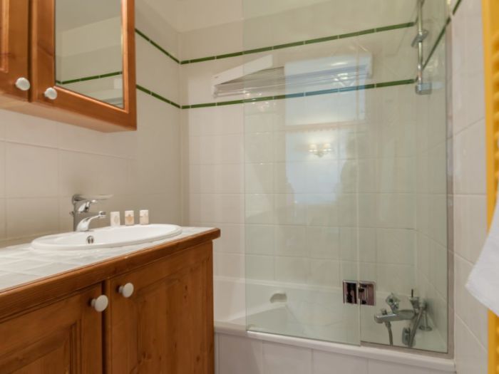 Гостиная - 1 диван-кровать (2 спальных места). Спальня - 1 спальня с 1 двуспальной кроватью и 3 спальни с 2 односпальными кроватями. Ванная комната - 3 ванные комнаты и 2 туалета. Кухонное оборудование - кухонная зона выходит на гостиную. Обратите внимание - более просторные апартаменты с кофемашиной Nespresso®, профессиональные капсулы для продажи на стойке регистрации.