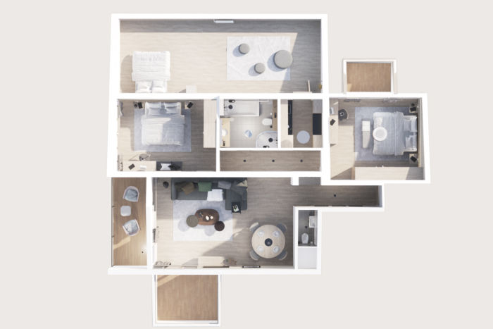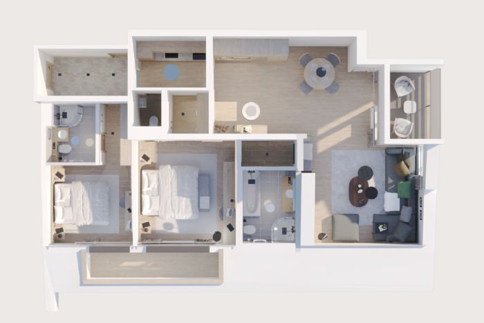 Эти залитые естественным светом апартаменты, расположенные на верхнем этаже, предлагают идеальный баланс между современностью, минимализмом и элегантностью. Вы оцените комфорт его просторных помещений, состоящих из главной спальни с собственной ванной комнатой, большой спальни с рабочей зоной, семейной ванной комнаты и отдельного туалета. Для удовлетворения ваших кулинарных желаний в квартире предусмотрена отдельная кухонная зона. Его большая гостиная позволит вам насладиться драгоценными моментами веселья и отдыха за вкусной едой или просто за просмотром фильма. Теплый кокон, в котором вы почувствуете себя как дома!